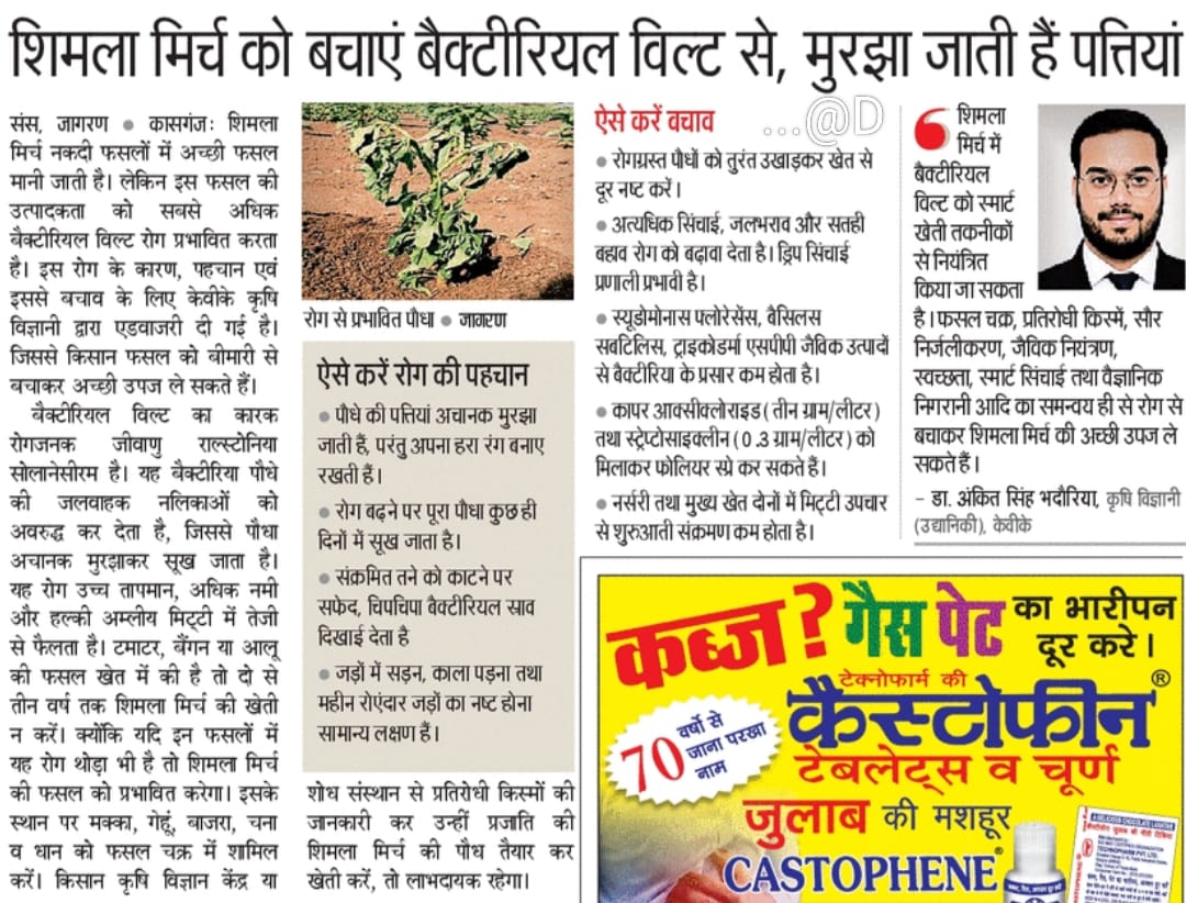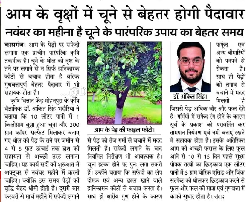 | 4 | विकास भवन सभागार, कासगंज में नैनो यूरिया एवम नैनो डीएपी तरल पर आधारित जनपद स्तरीय कार्यशाला | इफको, कासगंज द्वारा दिनांक 25/07/2023 को विकास भवन सभागार, कासगंज में नैनो यूरिया एवम नैनो डीएपी तरल पर आधारित जनपद स्तरीय कार्यशाला में प्रतिभाग किया तथा कृषि विज्ञान केंद्र, कासगंज के अध्यक्ष डॉ के के सिंह ने धान एवम खरीफ मौसम की फसलों में नैनो यूरिया एवम नैनो डीएपी का उपयोग एवम लाभ पर चर्चा की कार्यक्रम में केंद्र के वैज्ञानिक बृज विकाश सिंह ने श्री अन्न पर वार्ता की कार्यक्रम के मुख्य अतिथि विधायक सादर, कासगंज के साथ साथ मुख्य विकास अधिकारी, जिलाकृषि अधिकारी इत्यादि उपस्थित रहे | 2023-07-25 |